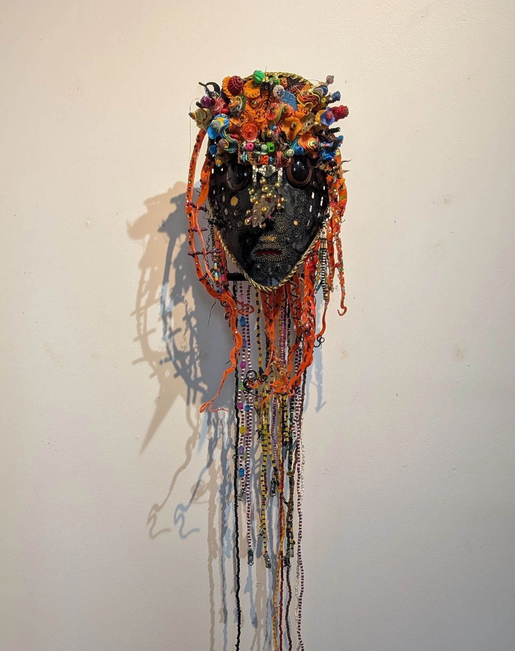 The Mask is a striking art piece entirely crafted from ocean and street debris plastic waste, meticulously handcrafted into beads and unique pieces. Each carries a narrative, drawing viewers in with its captivating colors, subtly conveying a powerful message about the pervasive impact of plastic consumption on our environment and initiating a dialogue to confront our role in perpetuating the cycle of plastic pollution.