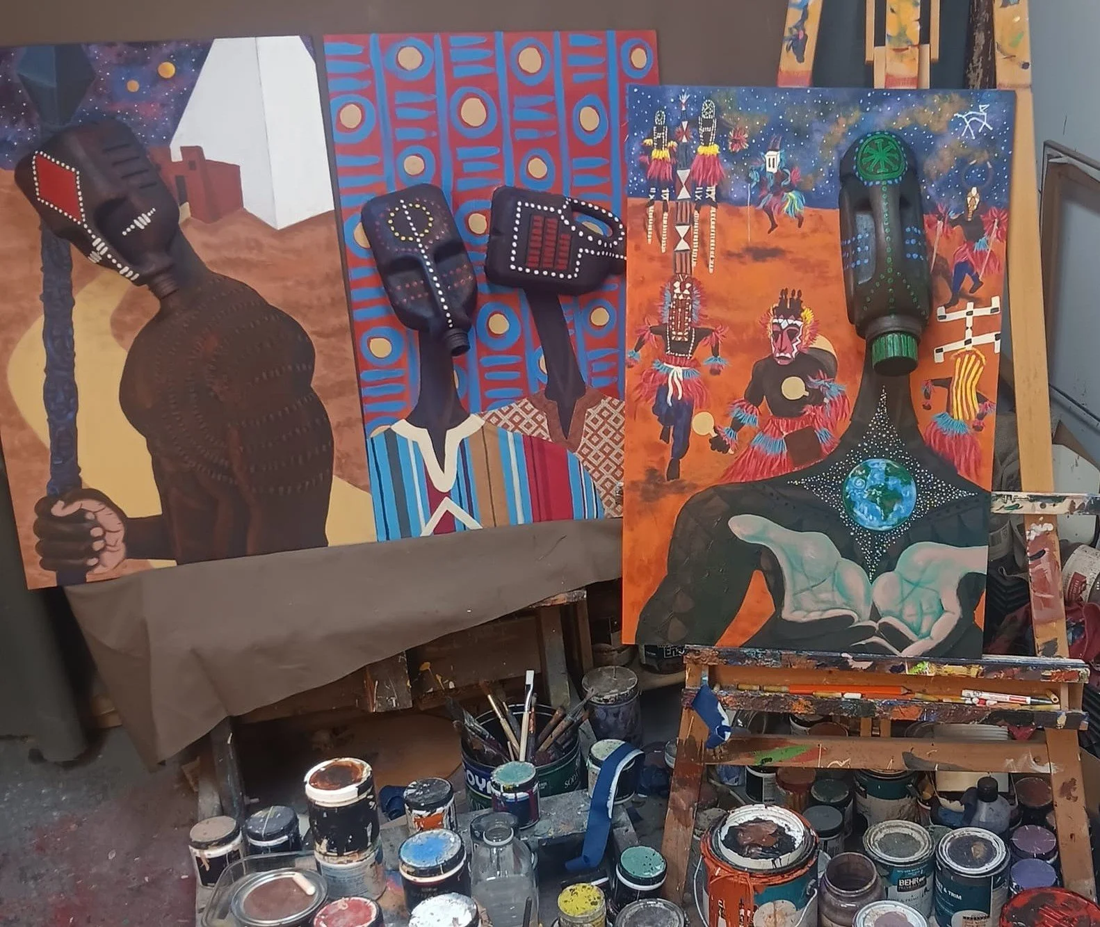 Artists Iyaba Ibo Mandingo and Frank Foster Post, on display together at URSA Gallery.