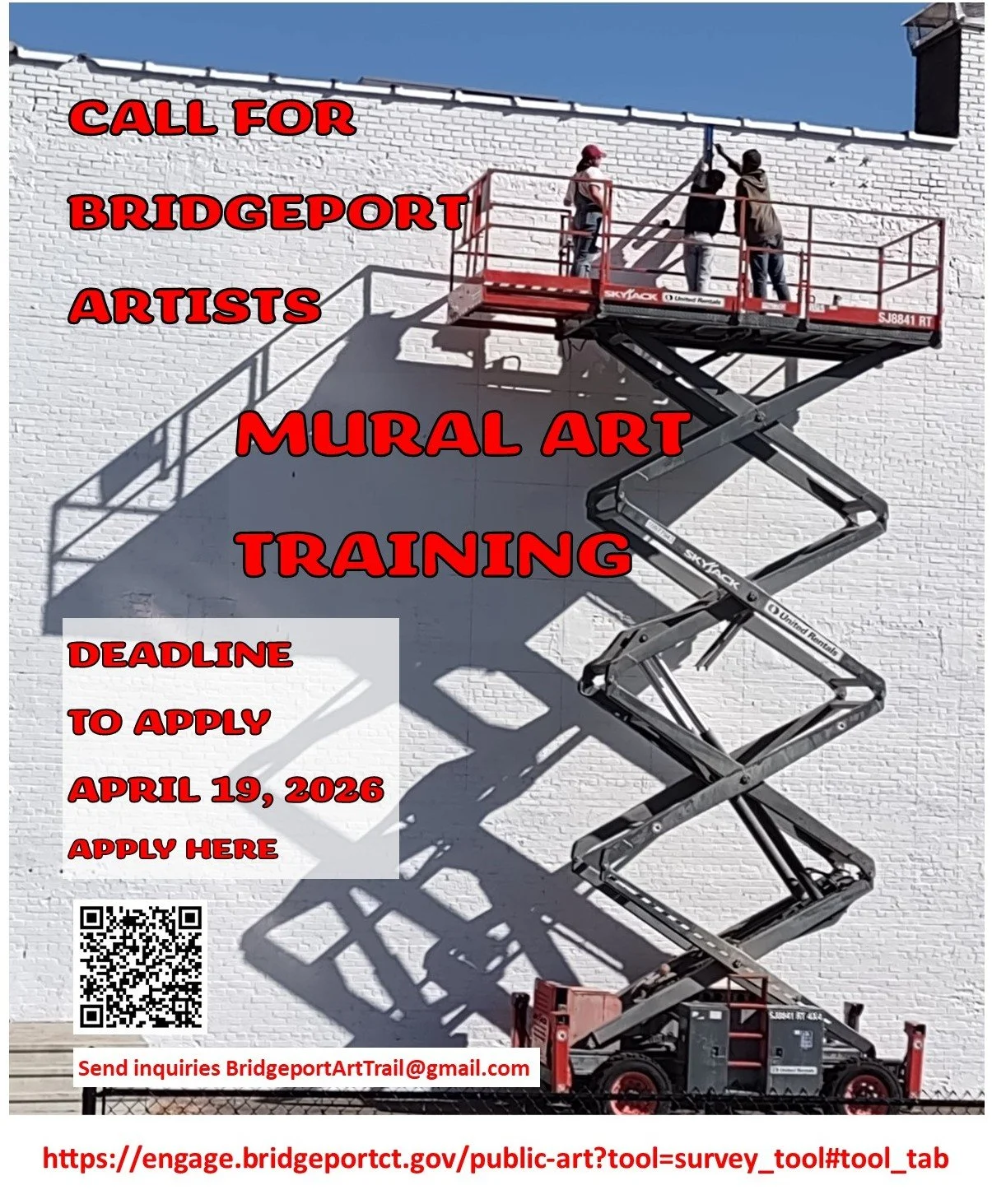 The deadline to apply is April 19. However, it is strongly suggested that apprenticeship applicants apply to this email beforehand to be sure your application is fully submitted on time; in case you have questions or challenges to complete this application. Please send inquiries to bridgeportarttrail@gmail.com