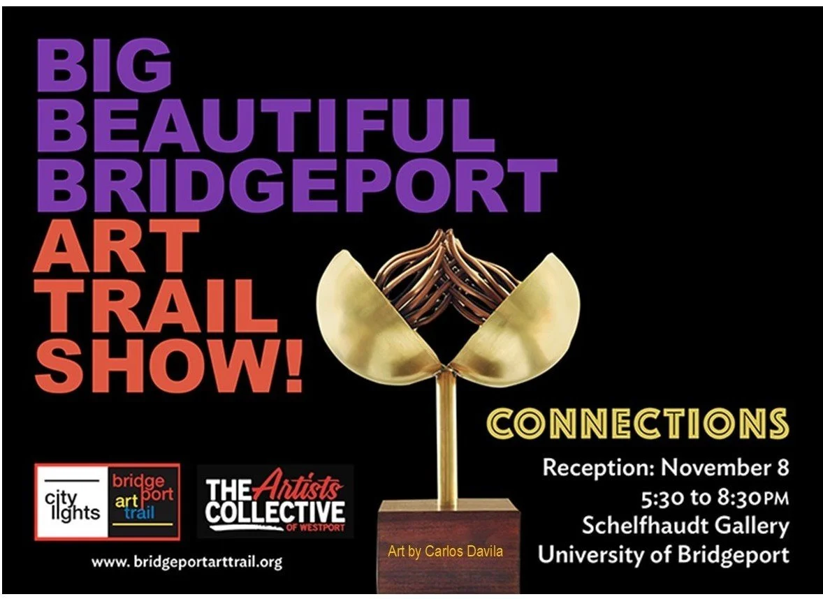 The BIG Bridgeport Art Trail is open to the public. View an eclectic selection of art in this large group featuring artists from the Bridgeport Art Trail family and the Artists’ Collective of Westport. The exhibit reception is Saturday from 5:30-8pm.